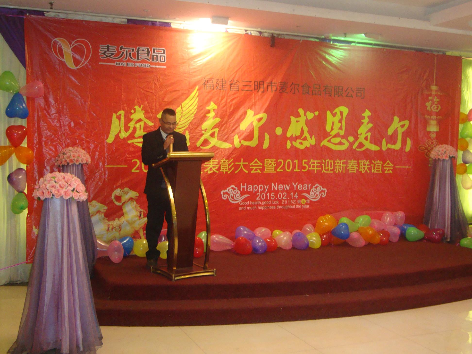 在先进表彰会上,公司董事长陈瑞跃先生首先作了热情洋溢的新年致词,他对一直以来关心、支持麦尔公司发展的各级政府部门、各位领导表示衷心的感谢;同时,衷心感谢新老客户对麦尔公司的信任与合作,衷心感谢全体员工及家属的辛勤付出和努力。在新春佳节即将到来之际,他向大家致以亲切的问候和诚挚的祝福,祝大家新春愉快、阖家欢乐、家庭幸福、羊年大吉!