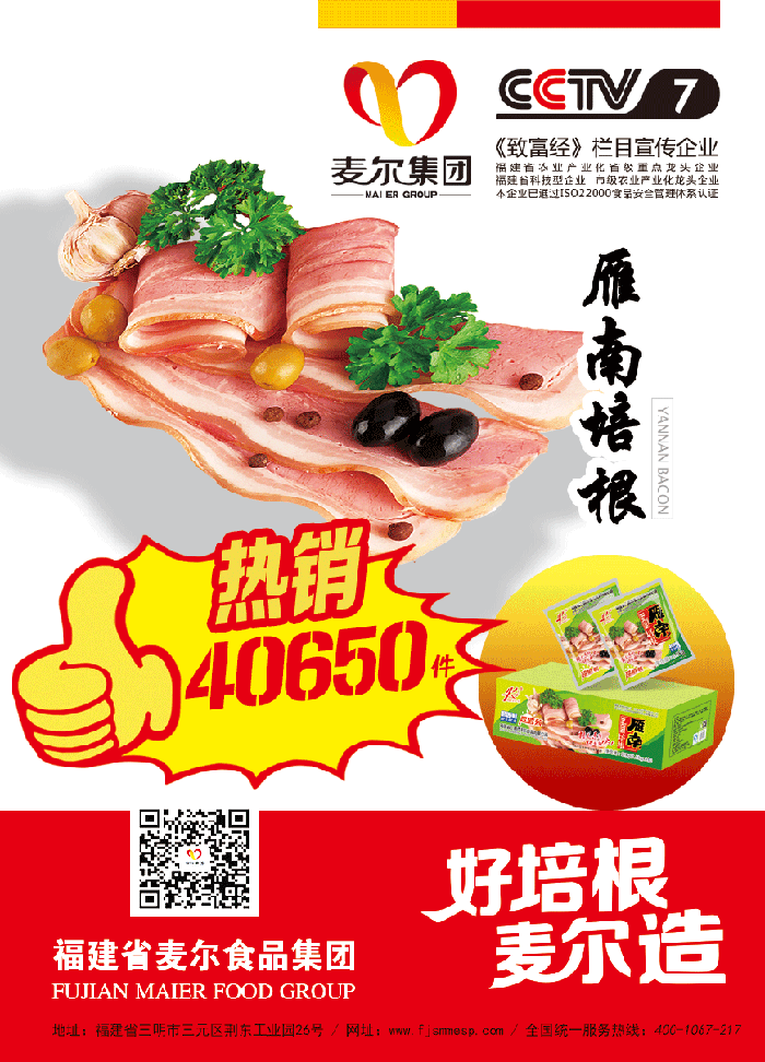 本次活动是麦尔食品集团为回馈全国广大的新老客户所准备的大型促销活动,本次活动产品优惠力度空前得到了全国的新老客户的鼎力支持,活动反响强烈。活动于2017年8月12日提前完成公司给予的限量数量:雁南培根共销售40650件,闽乡情1.0培根共销售10320件,活动取得圆满成功!